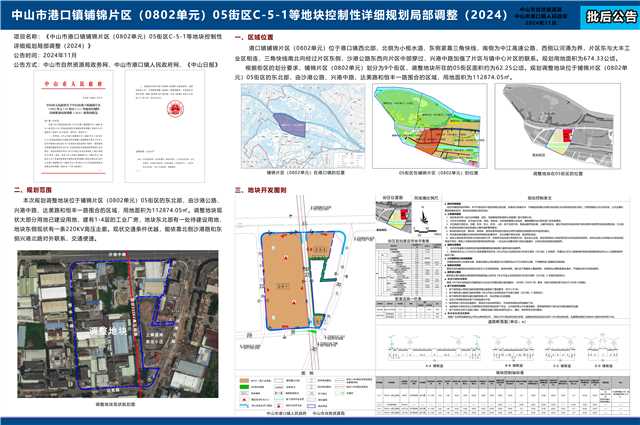 附件:《中山市港口镇铺锦片区(0802单元)05街区C-5-1等地块控制性详细规划局部调整(2024)》批后公告板