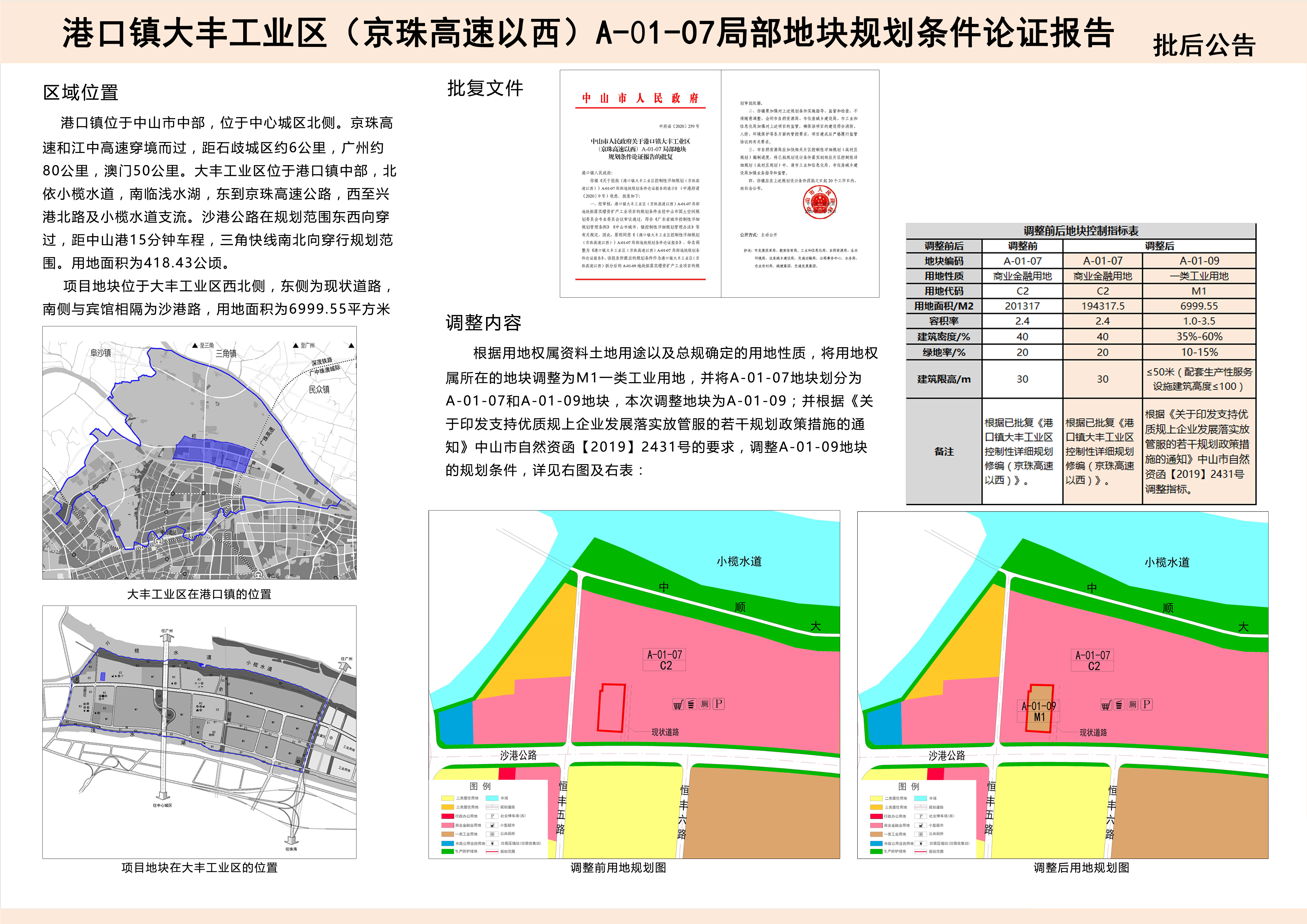 关于公布实施《中山市港口镇中心区南片区B03-1局部地块规划条件论证报告》《港口镇大丰工业区(京珠高速以西)A-01-07局部地块规划条件论证报告》成果的公告