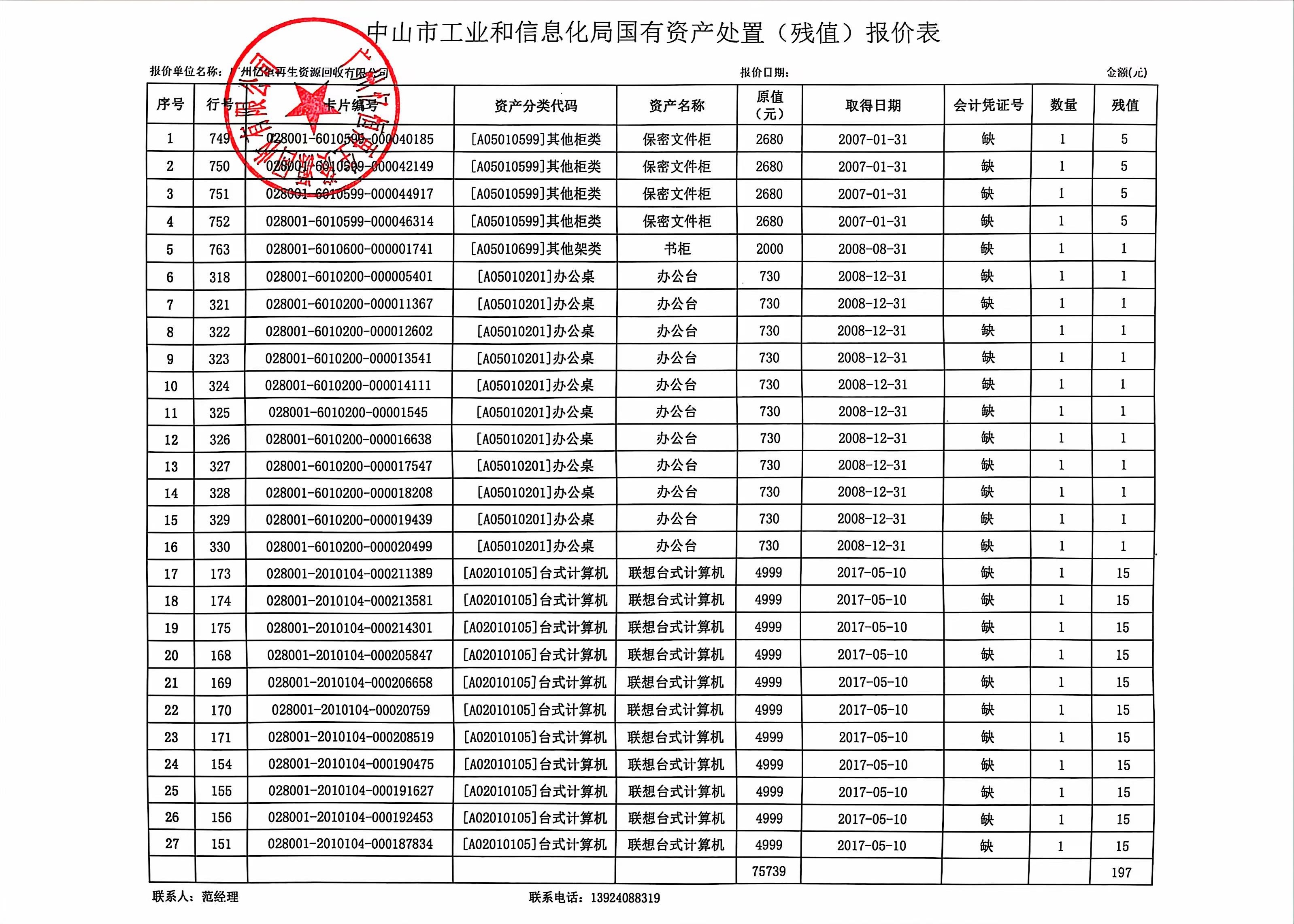 处置资产数量合计:27项,处置资产原值合计:75739元。