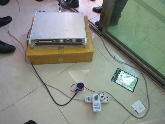 5月14日,我市查处了一个位于横栏镇三沙社区的非法电台。5月初,市无线电办监测发现广播频道92.6MHz播放售卖性药广告,从内容上初步判断是非法广播电台,通过监测测向确定信号源位于本市古镇镇和横栏镇交界附近。14日上午,无线电办出动监测车和执法车查找定位该非法电台。通过测向,确定信号源在三沙社区内。经查找,在该社区翠景公寓的楼顶发现了广播发射天线。在业主和警方协助下,执法人员查处了该非法电台,收缴广播发射机一套。通过这次查处事件,有效维护了我市无线电安全。