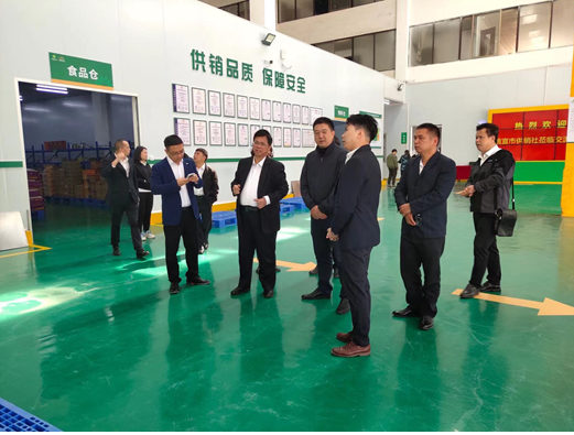 2月16日,信宜市供销社主任古幸、副主任林瑞煌一行12人,在市供销社党组成员、理事会副主任袁泉等陪同下,参观了市供销谷源公司配送中心、三乡央厨和供销文化展览馆。
