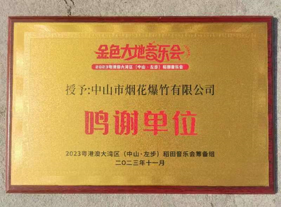 连日来,市烟花爆竹公司积极筹备并圆满完成了11月25日和26日举办的“2023粤港澳大湾区(中山·左步)稻田音乐会”烟花汇演,获得稻田音乐会主办方和现场观众的好评。