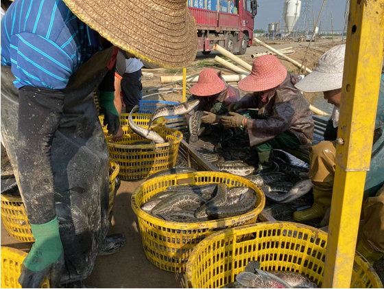 11月27日,三角供销社农腾合作社社员养殖基地收获生鱼22万公斤,货值360万元。