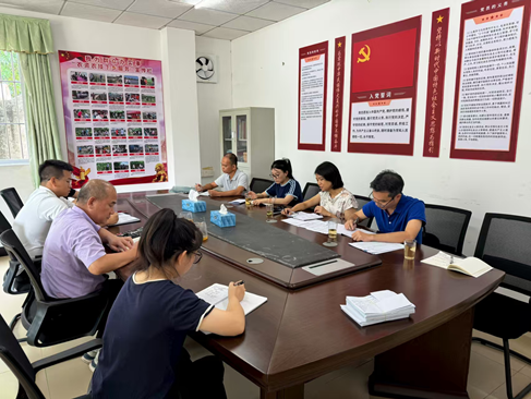 8月12日,三乡供销社与新圩村委会负责同志,在计划合作的水稻田商议下造水稻种植托管服务事宜。