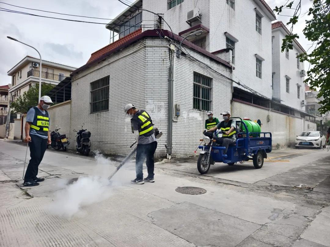 当天下午,联富社区、濠三小区、区公安分局、区社区卫生服务中心、区消防救援大队、区属总(集团)公司等单位超80名党员干部、群众及基干民兵同心协力在联富社区开展统一消杀行动。大家或深入里街暗巷、闲置空地、老旧房屋等重点区域,开展“地毯式”清理与消杀;或挨家挨户敲响门扉,提醒群众及时倾倒积水容器,帮助群众清理院落杂物。行动共入户95户、大型厂房5间,清理滋生地160余处,出动大型消杀车、烟雾机、喷雾器等设备40余次,投放灭蚊药物超1千克,派发100余份蚊香,消杀面积累计约10万平方米,党群协力共织“防蚊网”,全力阻断蚊媒疾病传播链。