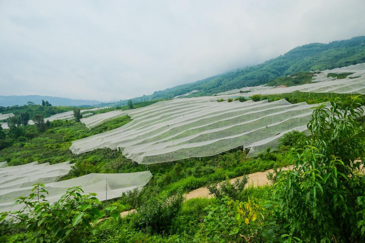 图为水城区协作共建乡村振兴现代农业产业园区猕猴桃“吨产园”防雹网工程