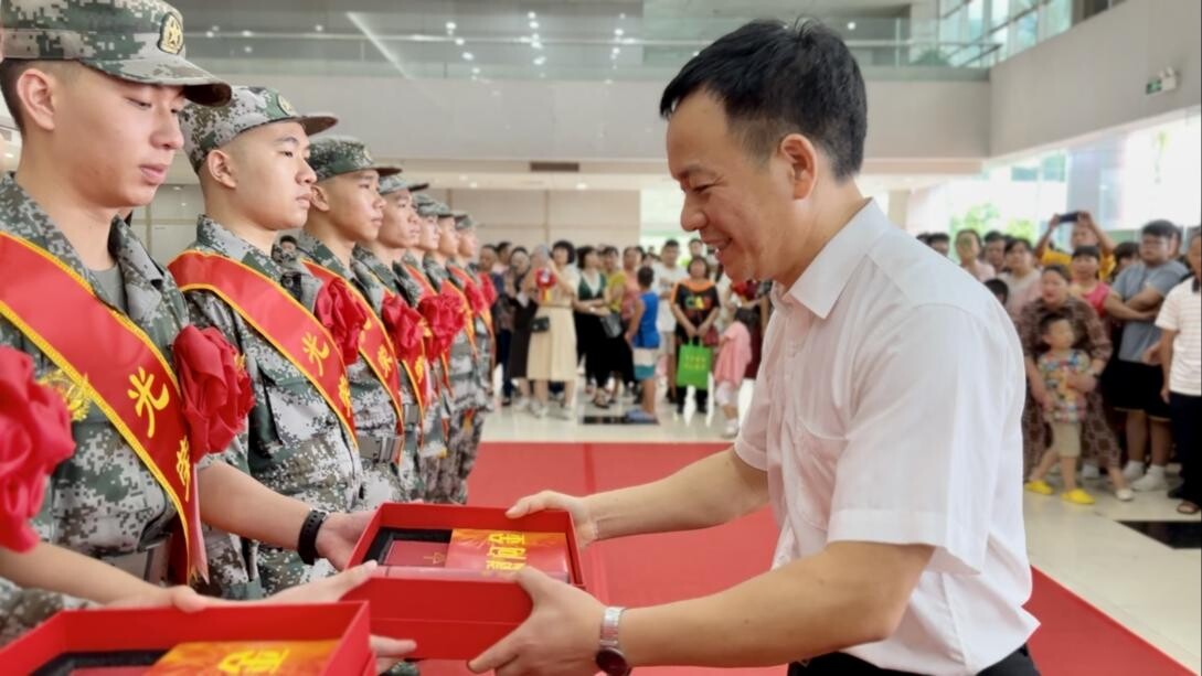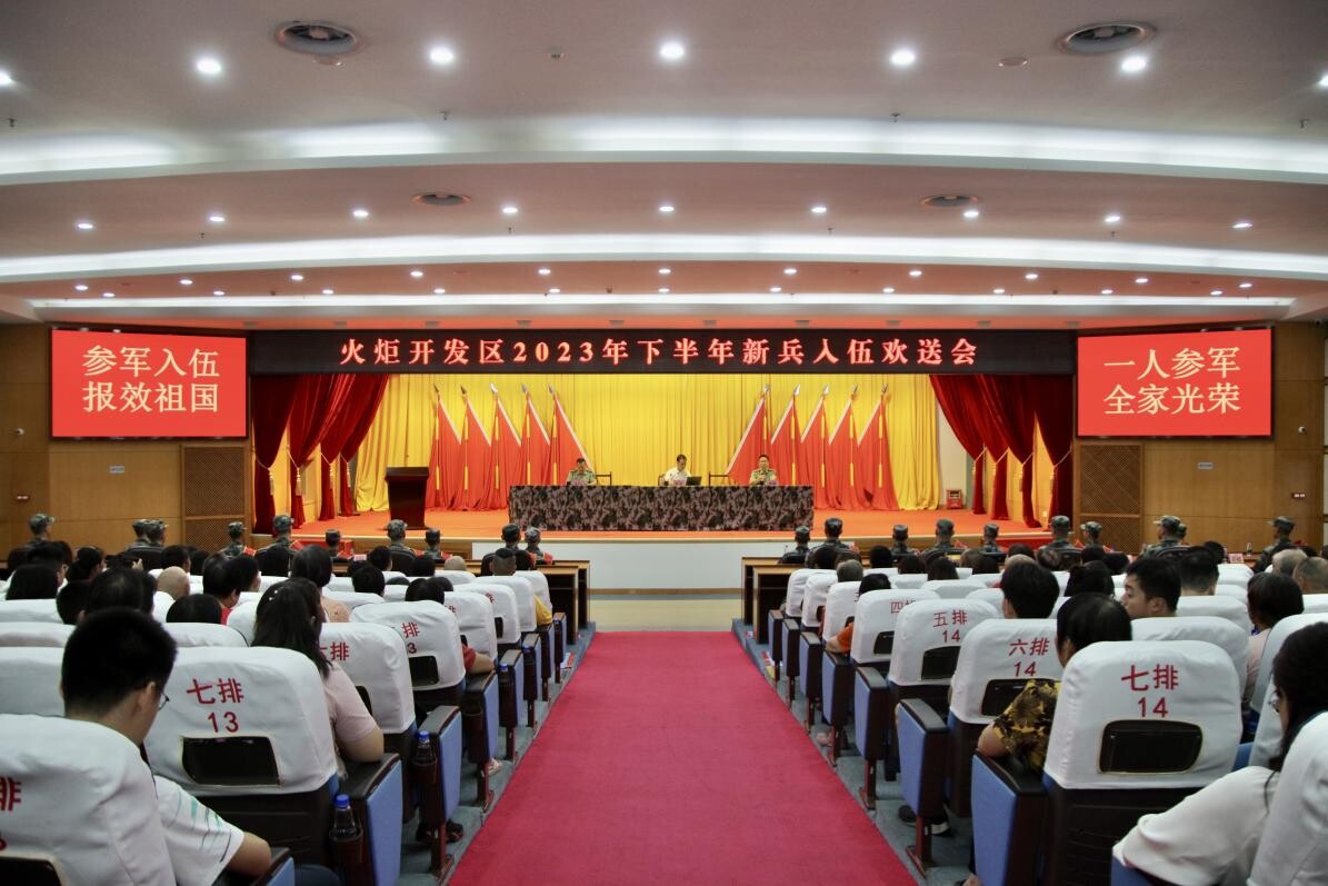 9月9日,火炬开发区举行2023年下半年新兵入伍欢送会,20名入伍新兵身着戎装、胸戴红花,即将远离家乡,踏上军旅新征程,履行保家卫国的神圣使命。