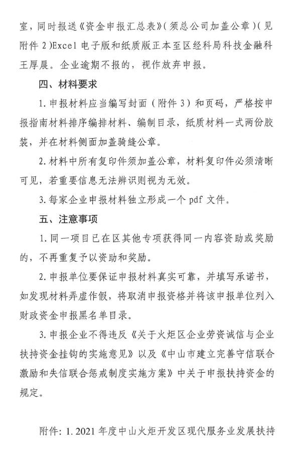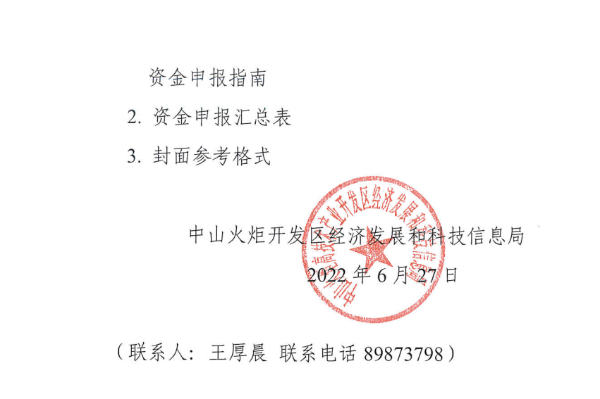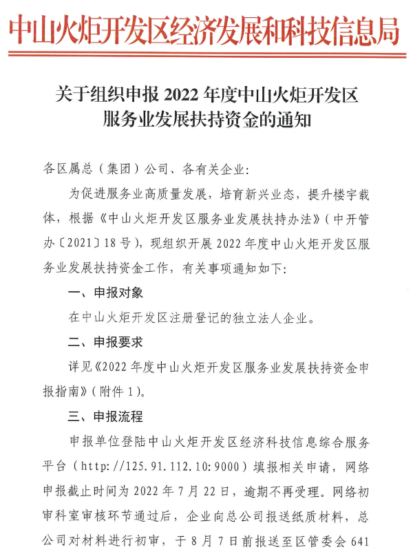 关于组织申报2022年度中山火炬开发区服务业发展扶持资金的通知