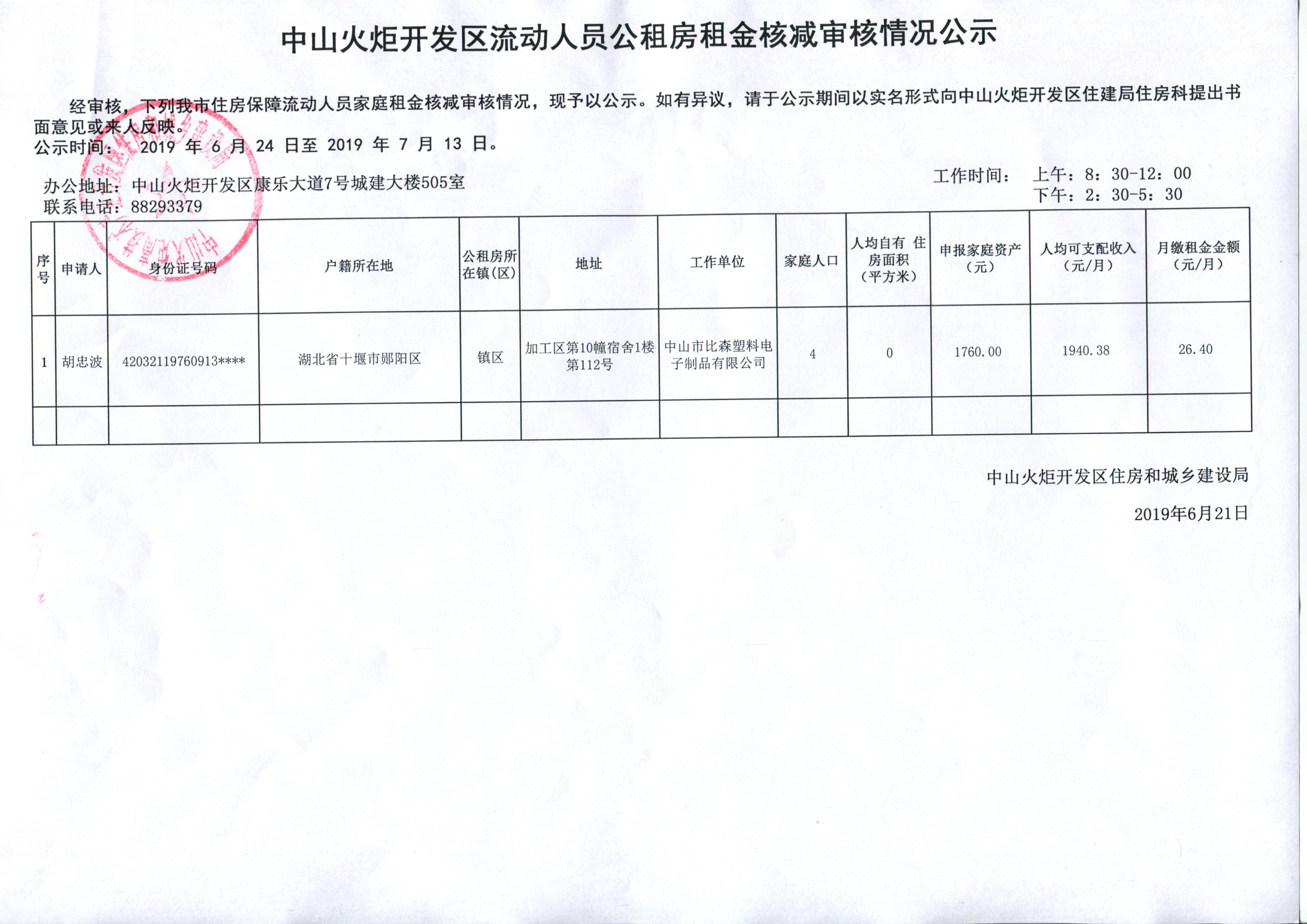 火炬开发区流动人员公租房租金核减审核情况公示