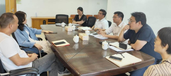 近日,梁泳辉、慎少辉与市商务局党组成员、副局长蒙志坚一同会见维龙投资和泰森布业代表,深入了解项目运营情况。