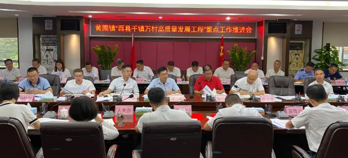 8月25日下午,黄圃镇召开“百县千镇万村高质量发展工程”重点工作推进会,深入学习贯彻习近平总书记视察广东重要讲话、重要指示精神,以及对浙江“千万工程”的重要指示批示精神,全面落实省委、市委具体部署,对“百千万工程”进行再动员、再部署、再推进。梁泳辉、潘初元、曾颖君等镇领导班子成员,机关各办(局)、镇属事业单位、部分双管单位负责人,各村(社区)书记参加会议。 会议传达全市“百千万工程”重点工作推进会议精神并部署我镇“百千万工程”下阶段工作,通报我镇“百千万工程”建设“10+1”示范项目推进情况,以及部署“三清三拆三整治”百日攻坚行动。 镇党委书记梁泳辉表示,实施“百千万工程”,首要就是提升黄圃的生产、生活、生态环境,按照“抓好一三五,做强百千万”部署,实现“一年开局起步、三年初见成效、五年显著变化、十年基本改变”,持续擦亮中国家电制造基地、中国腊味食品名镇、中国历史文化名镇“三张名片”金字招牌,全力建设“产业高地,名镇黄圃”。 梁泳辉强调,当前要坚定不移打赢打好转作风攻坚战、破解土地瓶颈攻坚战、水污染治理攻坚战,全力推进强镇融湾发展、产业升级、主题产业园建设、营商环境改革、城镇升级、交通畅联、绿美黄圃建设、公共服务均等化八大行动。镇领导班子要牵好头,冲锋在前,做好各项工作。各村(社区)要用好驻村第一书记和驻镇帮镇扶村工作队,不断提高基层党组织凝聚力、组织力、战斗力。要立足黄圃实际,在“百千万工程”的主战场担当作为,走出一条具有黄圃特色的高质量城乡融合发展之路,全力打造城乡区域协调发展的“黄圃样板”。