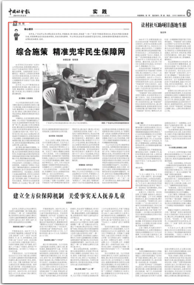 多方联动 分类救助 中山市民政局相关负责人介绍,为解决基层社会救助经办服务力量不足等问题,实现对困难群众的主动发现、精准帮扶,中山市通过市镇联动、部门联动,以群众需求为导向,分类走访排查,根据实际情况进行综合救助帮扶。市镇联动,主动为困难群众排忧解难。中山市结合“兜底解忧暖民心”行动、社会救助领域专项治理“回头看”等工作,通过建立分类关爱服务机制、健全基层走访探视服务机制、完善主动发现和快速响应机制,成立由镇(街)党员干部、“双百”社工、村(居)民小组、社区小区物业等人员组成的专项调查队伍,拉网式逐村逐户走访摸排,全面掌握困难群众的急难愁盼问题,建立问题台账和需求清单,及时有效地提供精准帮扶,实现应帮尽帮、应救尽救。部门联动,着力推进专项救助。中山市聚焦困难群众就业和住房两类难题,充分发挥困难群众联席会议机制作用,对适龄未就业困难对象和住房困难家庭两类服务对象开展兜底帮扶暖心行动,帮助其解决实际问题。68岁的何先生独自居住在火炬开发区的家中,无劳动能力,日常生活比较困难。当地民政干部和社工在走访时了解到他的情况后,协助他申请了特困供养,每月可享受到1000余元的特困供养金。在此基础上,民政部门还通过链接资源,对何先生居住的老旧房屋进行修缮,更换了门窗,改造了老旧线路,消除了日常居家生活的安全隐患。得知何先生很喜欢看粤剧时,社工还通过“微心愿”认领的方式,链接慈善资源为他家安装了有线电视,让他的居家生活更丰富。 结对帮扶 常态关爱 区女士家住小榄镇,因患大病,手术后需要定期治疗,无法外出工作,一家人的生活仅靠丈夫微薄的工资维持。较高的医疗费用和儿子上中学的支出,导致家庭生活非常困难。无奈之下,她向小榄镇社会救助工作人员求助。工作人员根据她家的实际情况,协助她申请了低保和临时救助,又通过中山市大病困难帮扶中心对其进行慈善救助,缓解了她的医疗费用压力。此外,工作人员还为她链接了慈善助学和危房改造项目,在保障其儿子上学的同时,也改善了一家人的居住环境。一系列综合帮扶,有效解决了区女士家面临的实际困难,让一家人生活更有奔头。中山市民政局相关负责人介绍,为切实解决群众的困难,近年来,中山市实施了“党建+社会救助”,全面开展党员干部与特殊困难对象结对帮扶行动,建立起市、镇(街)、村(居)三级探视巡访机制,组建“一对一”党员干部联系帮扶队伍,常态化开展关爱服务行动。对民政兜底服务对象中的独居老人、重度残疾人、重病患者等重点对象,每周进行不少于2次入户走访探视,建立探视台账,动态记录服务对象的生活状况和困难需求,及时链接救助服务资源,帮助其解决急难问题。对非民政兜底对象中的空巢老人、孤寡老年人等,每周不少于1次入户走访探视,并关注服务对象的生活变化情况,及时将符合条件的对象纳入各项社会救助保障范围。 智慧赋能 实时关注 为及时发现群众困难,开展精准帮扶,中山市充分发挥低收入人口动态监测信息平台作用,开展低收入人口信息采集、动态监测,累计将3.6万多名低收入人口纳入监测范围,实现“政策找人”。同时,依托“智慧民政”系统个人电子信息基础档案,建立起走访排查长效机制,由各镇(街)动态更新服务对象生活状况,在“智慧民政”系统录入困难群众所接受的各类社会救助、养老服务、残疾人补助等信息数据,形成个人电子信息档案,方便工作人员随时掌握服务对象情况,适时调整救助帮扶措施。 中山市还充分运用大数据等信息化手段,为特殊困难对象构建安全防护网。如中山市民政局协同水务部门开发了智能水表监控平台及预警信息系统,对民政服务对象日常用水变化情况进行实时监测和预警。系统每天自动分析安装有智能水表的服务对象家中用水情况,如发生异常低用水量或长时间恒定用水情况,则自动报警并向监护人、社区联系人分别发送报警短信,相关人员第一时间入户核实,实现对特殊困难服务对象的居家安全监测和预警服务。同时,各村(社区)组建起预警监测服务队伍,由村(社区)工作人员、社工等与服务对象建立“一对一”或“一对多”结对帮扶关系,确保在接收预警信息后及时核实帮扶。