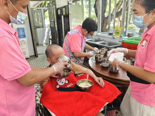 “叻叻猪来噶。”“漱漱口,擦擦嘴,把那只手拿出来吃东西。”11时许,记者在颐老院食堂看到,老人们按自理能力整齐列坐,护工们或为自理老人备餐打饭,拿剪刀将不易咬断的菜品仔细剪成碎段,或为不能自理的老人逐一喂食,不时送上言语鼓励,给足了“情绪价值”。徐晓燕介绍,颐老院保证老人每餐按“一大荤一小荤一素菜一汤”的标准,针对流食、软食、硬食需求分类准备,保证营养摄入,全力守护老人健康。