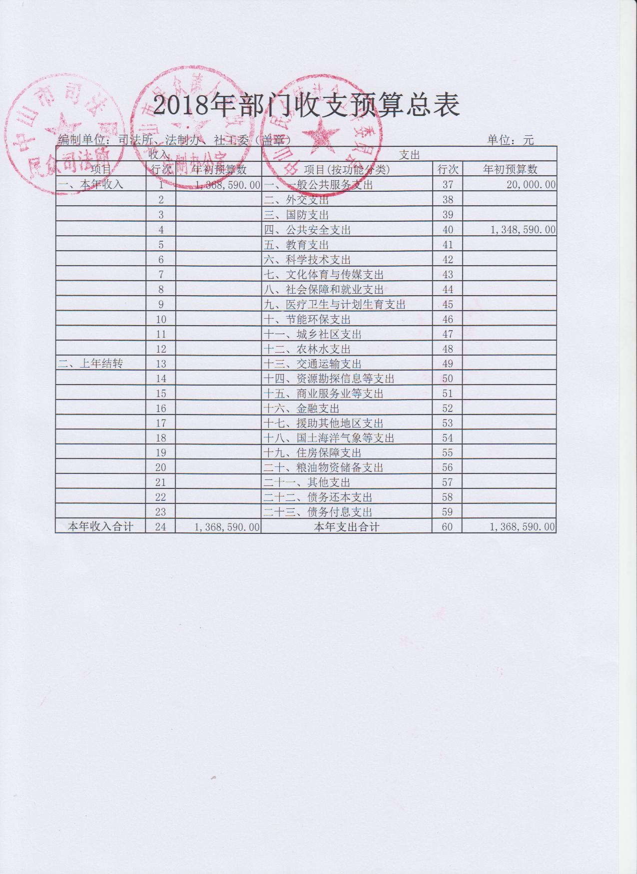 2018年民众司法所、法制办、社工委预算公开