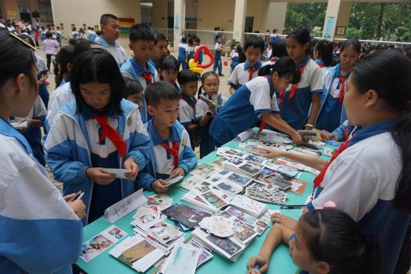 少先队的队员成了地地道道的推销员,大声叫卖,老师们在摊位边一起帮忙推销商品、维持秩序。兴奋的同学们手拿着积分,三五成群地穿梭在各个摊位前,寻找适合的积分奖品。