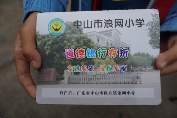 11月15日下午,浪网小学的学生人手一张“道德银行”的存折,存够了积分就可以到超市兑换礼品。