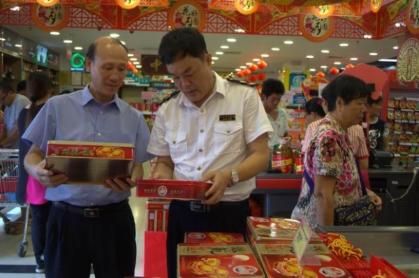 检查组一行对镇内大型超市、农贸市场内的月饼、肉类、海鲜、鱼类等过节畅销食品进行检查,检查场内售卖食品的进货来源、生产日期和生产厂家,督促经营者必须要保留进货单据,保障个人和广大群众的利益。