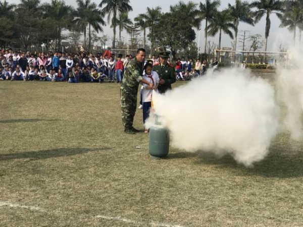 活动中,消防官兵还向学生们讲解了如何防火、如何报火警及火灾发生疏散逃生等消防常识。现场为师生们演示了灭火器设备的使用,强调了注意事项,师生也亲身体验使用灭火器,参与灭火。