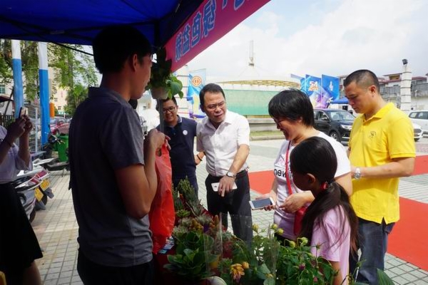 镇党委副书记杨再忠到现场感受创业青年高涨的热情,到摊位前询问大家的销售情况,希望通过本次活动,激发广大青年的创业热情,让他们累积更多丰富的创业经验。