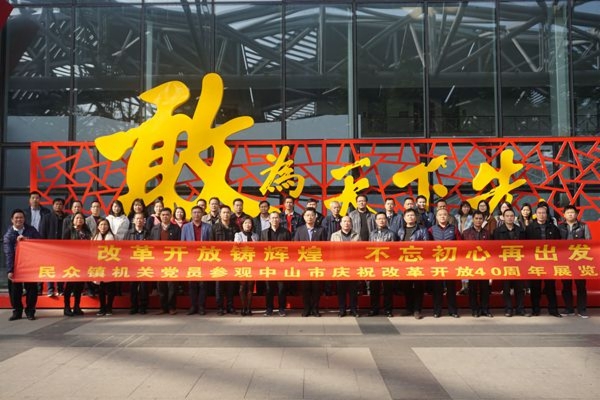 1月18日上午,在讲解员的带领下,我镇留家领导班子成员及其他党员干部通过参观图片、文字、实物、声光电体验等多种形式,回顾改革开放40周年以来的发展历程,深入了解了伟人故里40年来在经济、社会等各领域取得的辉煌成就,以及感受到了中山儿女与时俱进、奋勇前行的精气神。