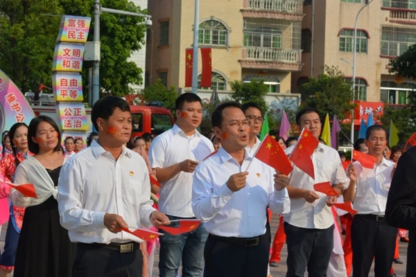 据了解,这是民众镇首次举办快闪活动,本次活动包含了多个场景,除了文化广场,快闪活动还在民众镇“四最”精神学习园、伟丰农场等地上演,融入了咸水歌等本土特色元素,向大众展示一曲带有浓郁岭南水乡风味的爱国礼赞。