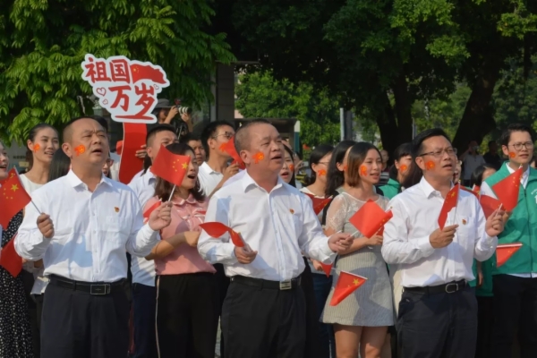 9月25日下午,民众镇举行了一场爱国快闪活动,来自镇机关30个部门的工作人员及民众镇各村(社区)的19支广场舞表演队伍近千人齐聚镇文化广场,大家载歌载舞,向新中国成立70周年献礼。