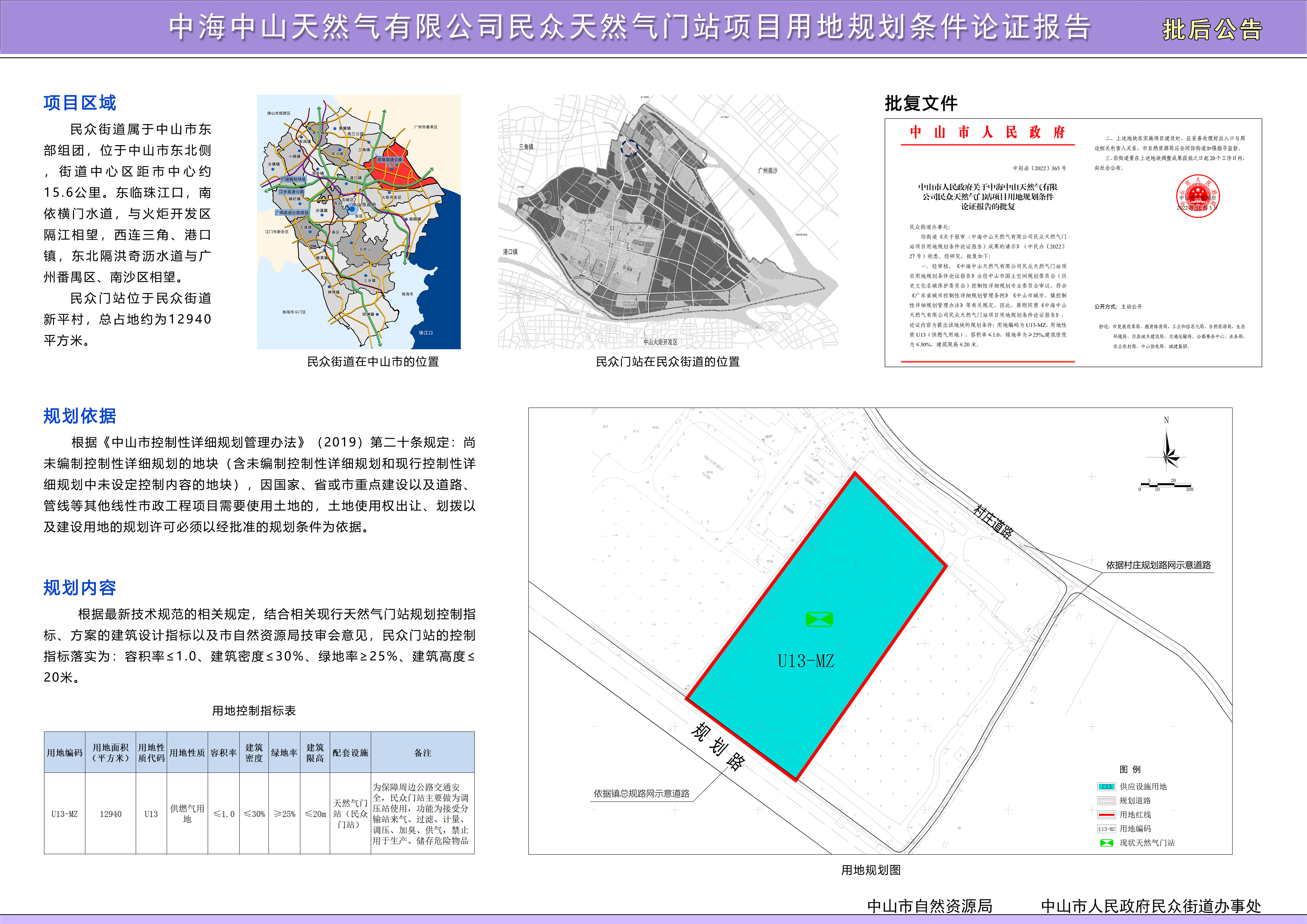 《中海中山天然气有限公司民众天然气门站项目用地规划条件论证报告》已于2022年11月3日经51黑料 批准。根据《中华人民共和国城乡规划法》《广东省城乡规划条例》等相关法律、法规要求予以批后公布。有关规划成果信息可在市自然资源局网站(//51hltop.com/zrzyj)和中山市民众街道网站(//51hltop.com/mzz)查询。