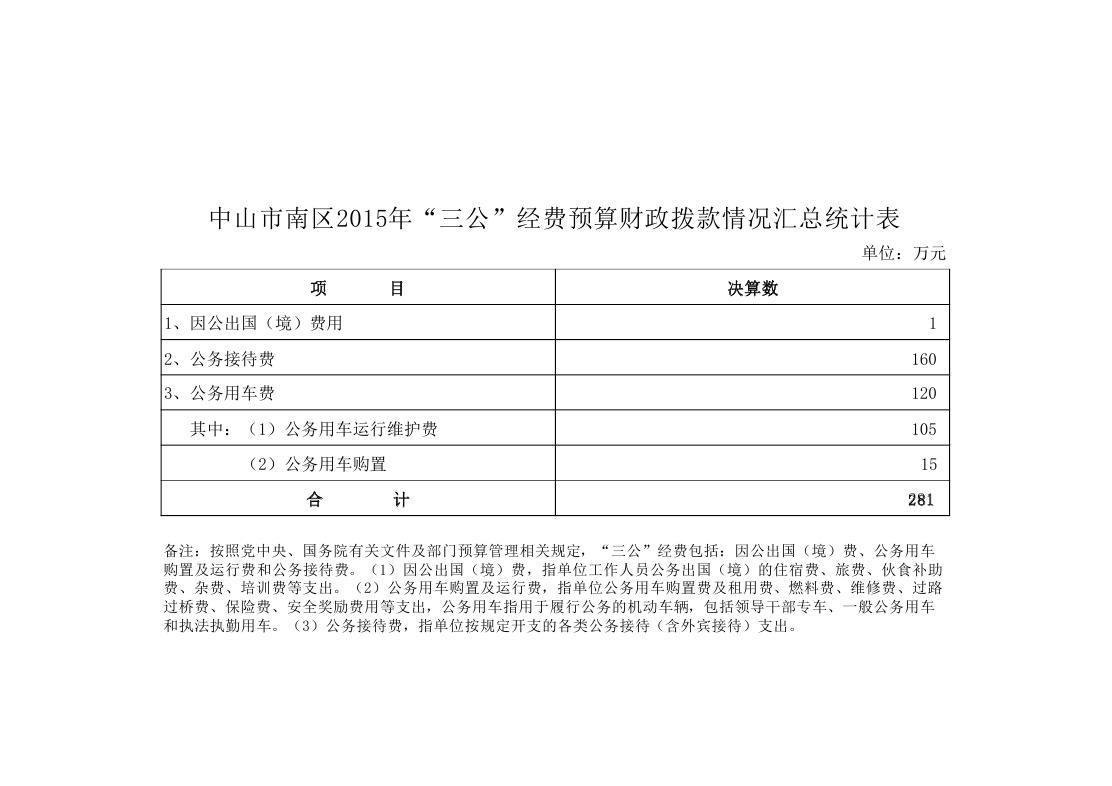 中山市南区2015年“三公”经费决算财政拨款情况统计表