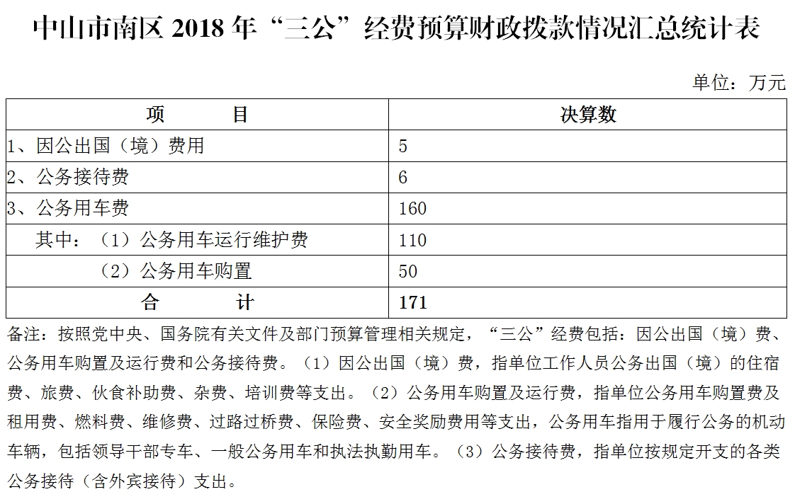 中山市南区2018年“三公”经费预算财政拨款情况汇总统计表