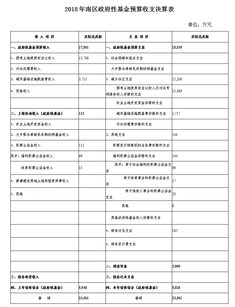 2018年南区政府性基金预算收支决算表