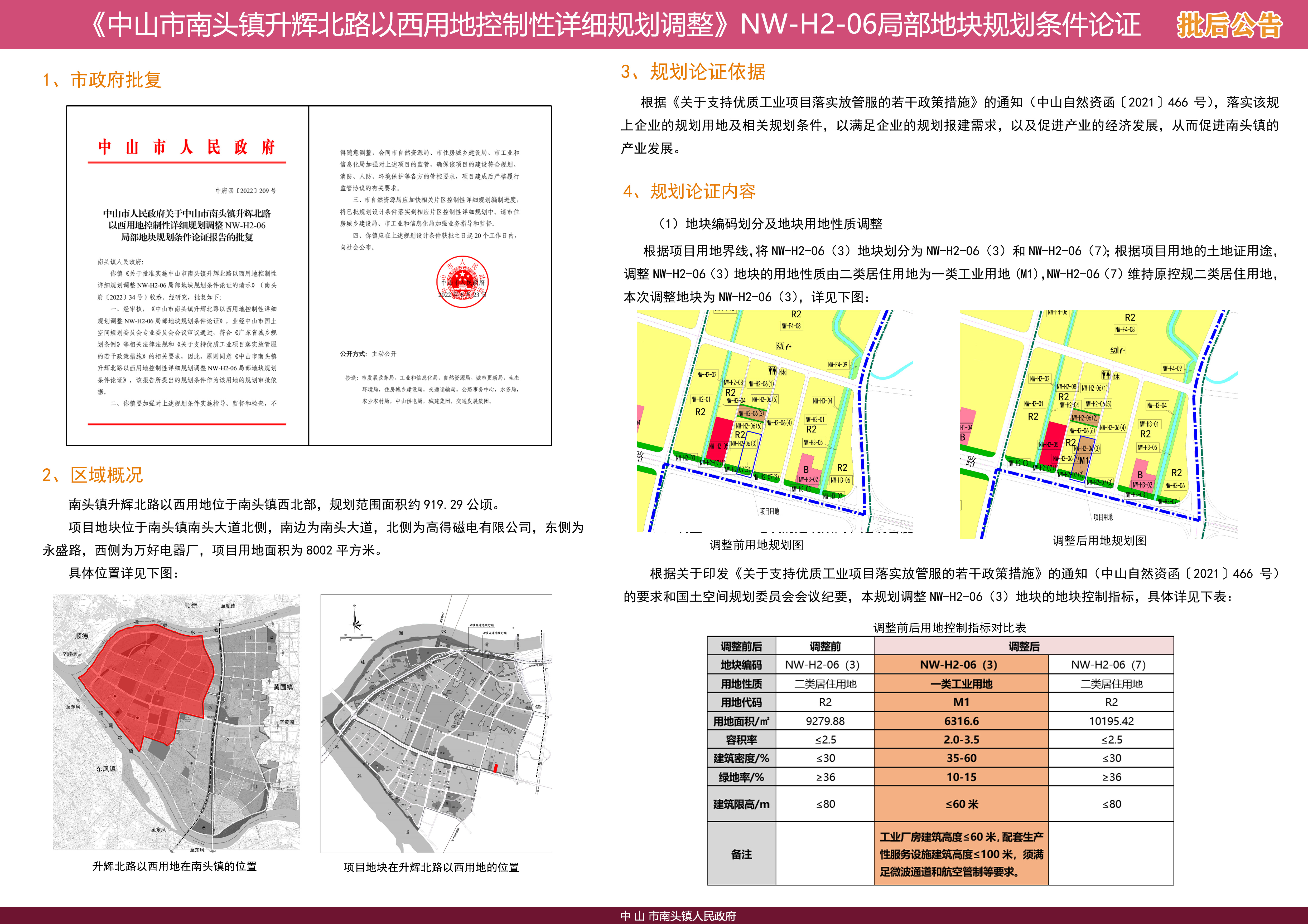 附件:《中山市南头镇升辉北路以西用地控制性详细规划调整NW-H2-06局部地块规划条件论证报告》批后公告