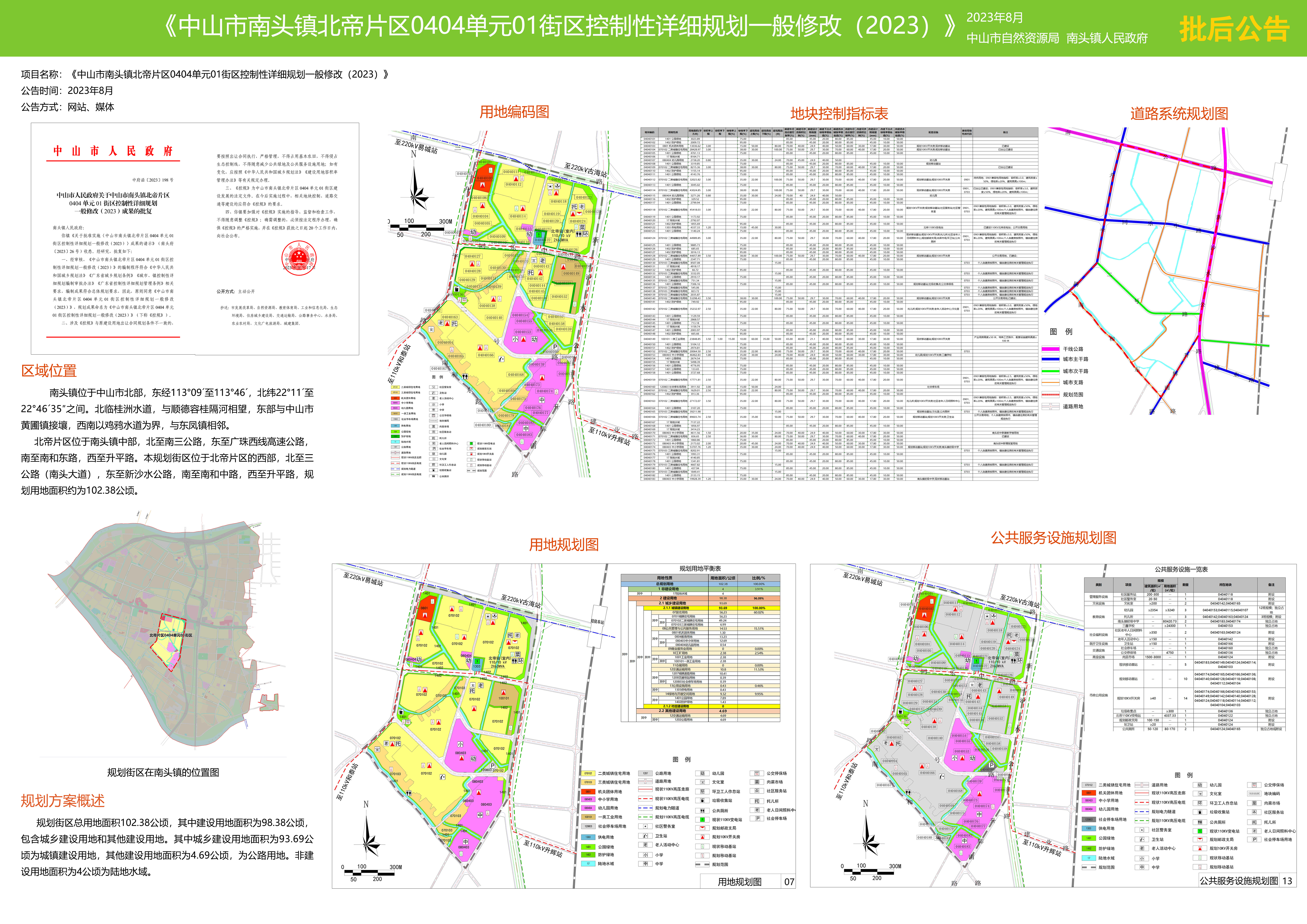 附件:《中山市南头镇北帝片区0404单元01街区控制性详细规划一般修改(2023)》批后公告
