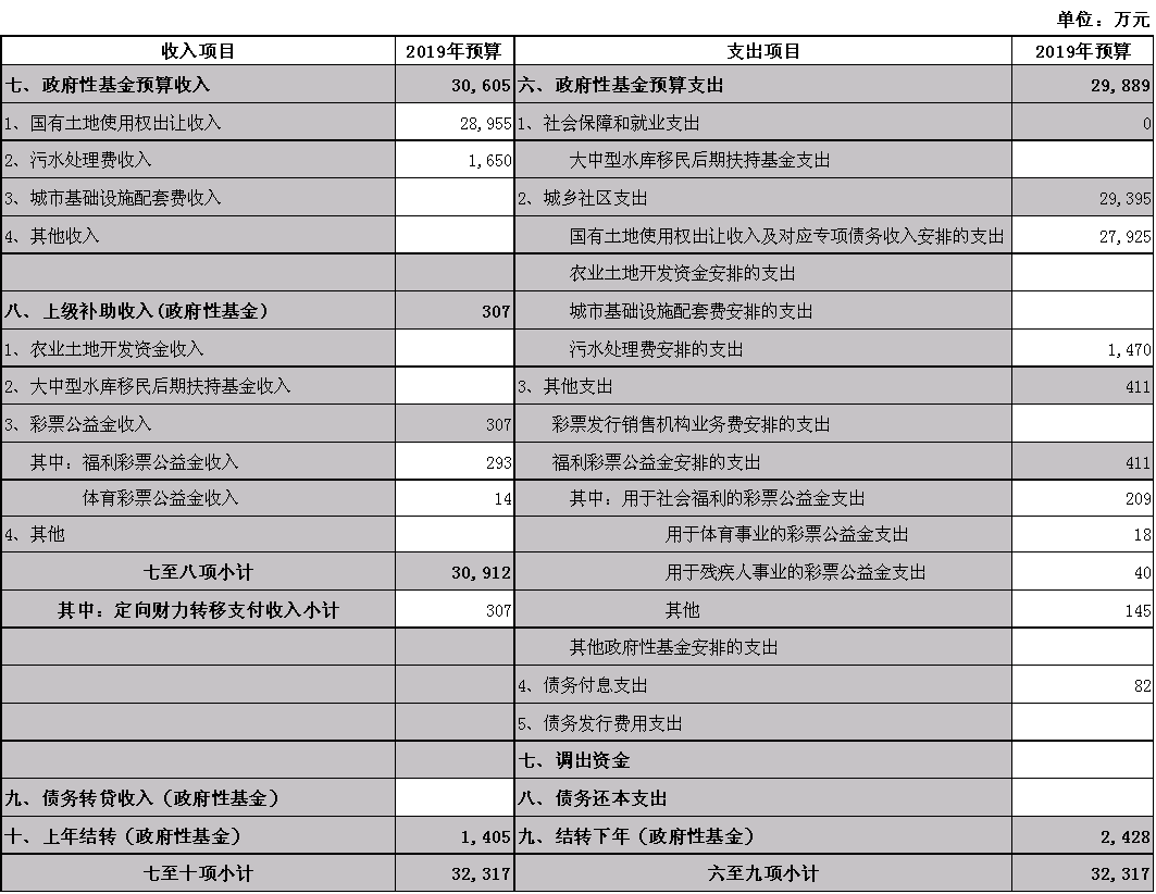 中山市三角镇2019年政府性基金预算收支预算表