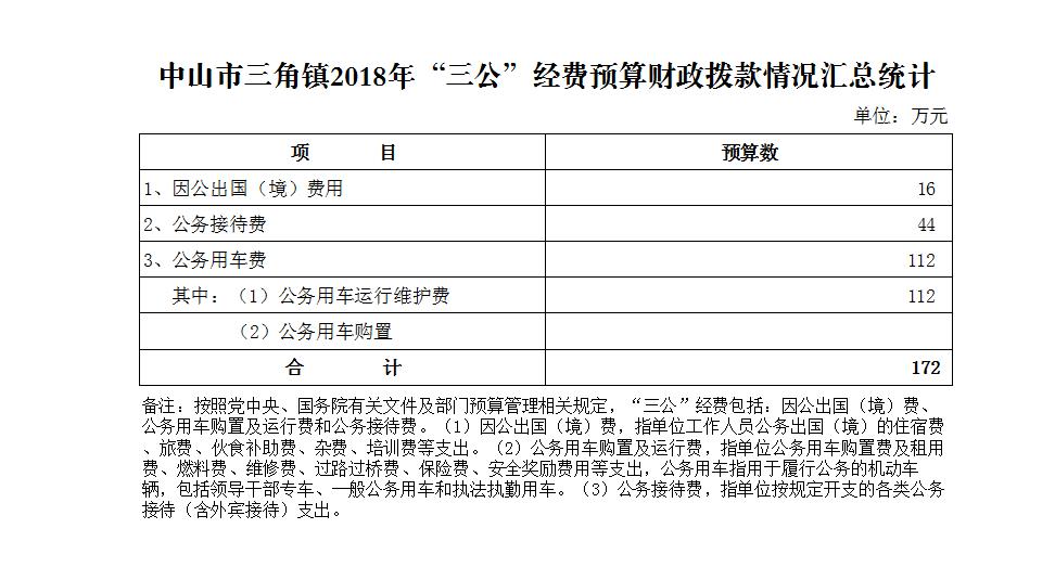 中山市三角镇2018年“三公”经费预算财政拨款情况汇总统计表