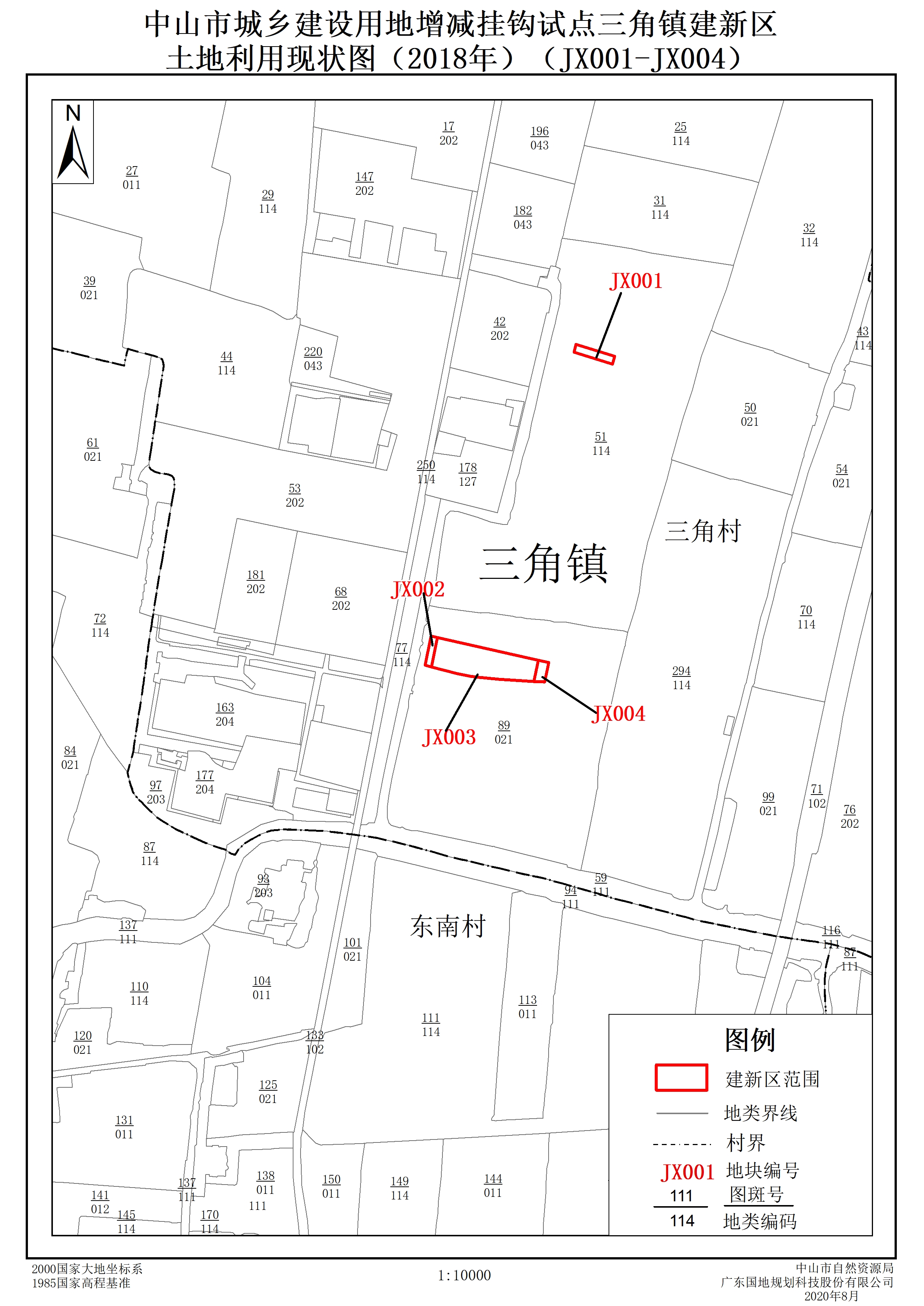 建新区位于中山市三角镇,面积为28.17亩,共计4个地块。建新区现状土地利用类型为农用地28.17亩(其中园地24.14亩、其他农用地4.03亩),国家平均利用等为7等。根据《中山市三角镇土地利用总体规划(2010-2020年)调整完善方案》,建新区地块均规划为城乡建设用地,计划于2020年使用。通过城乡建设用地增减挂钩试点项目的实施,进一步优化土地利用布局,提高城乡建设用地集约利用水平。