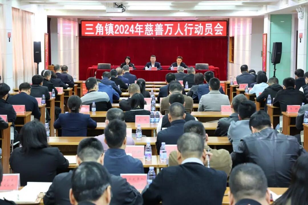 1月5日上午,三角镇召开2024年慈善万人行动员会。镇领导班子成员、机关部门及事业单位负责人、双管单位负责人、各村(社区)书记、商会、企业代表参加。党委副书记、镇长李凯航主持会议。