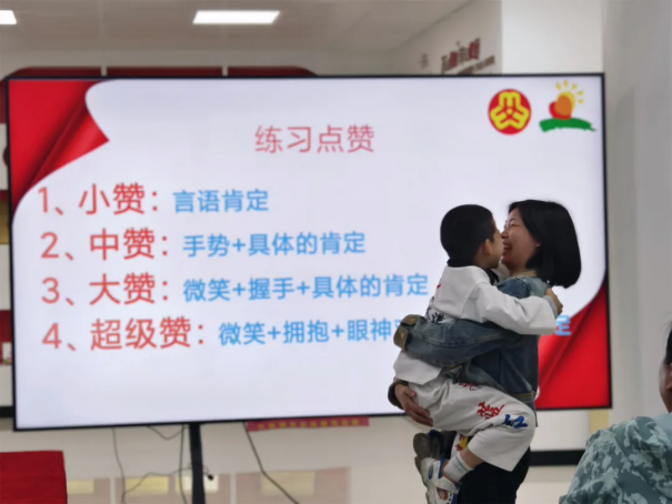 一场别开生面的“爱的连接环节”拉开活动序幕。这个环节通过赞美孩子的方式,让家长们用语言和肢体表达对孩子的爱与肯定。小赞、中赞、大赞到超级赞,每一个环节都让家长们深刻体验到赞美孩子的重要性。通过这样的方式,不仅增强了亲子之间的情感联系,也让家长们学会了如何用正确的方式表达对孩子的爱。