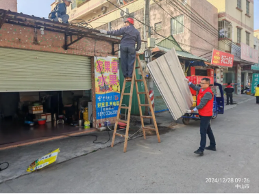 镇党委副书记何永远、副镇长卢宝来组织镇驻村工作组对结民村主干道三线问题进行现场办公,针对现存黑点问题要求运营商对标对表限期完成整改工作。结民村携手结对共建单位中山市总工会、三角镇总工会、驻村部门、中心小学和企业等党组织共计60余人,共同发力,针对结民村民安东路、月湾路、民安北路等路段摸排黑点,分组进行违章建筑的清拆、农房风貌的管控和房前屋后的乱搭乱建整治活动。