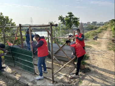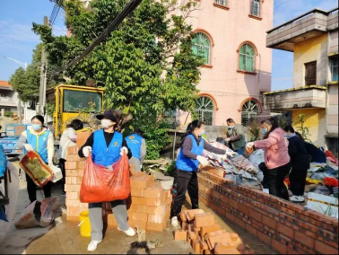 沙栏村党员干部、各群团组织志愿者联合中山市工人文化宫、沙栏小学、村工联会企业工会职工35人共同开展“百千万工程”百日攻坚志愿服务活动。志愿者们分组对白鲤南路乱搭乱建、白鲤北路周边垃圾堆积问题点进行集中清理整治,包括清拆棚舍、清理堆积砖头、清扫生活垃圾、对墙身进行修补等。