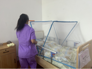 严查细导筑牢硬件防线:工作人员深入中心内部,逐项核查房间及公共区域卫生状况,通过全面清除积水杂物、定期消杀、为老人增设蚊帐、派发驱蚊液等措施,落实长效防控机制。