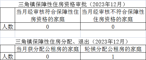 三角镇保障性住房资格审批、分配、退出(2023年12月)