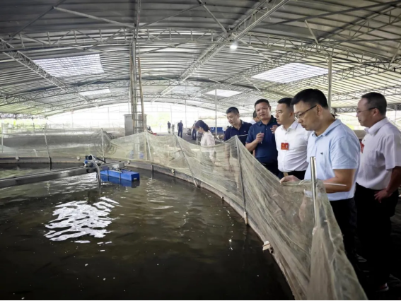 执法检查组来到三角镇东边水产养殖专业合作社,现场听取“稻渔综合种养模式(稻渔联作)”情况介绍,查看陆基养殖车间、水稻田、养殖尾水处理系统功能性鱼塘等情况。