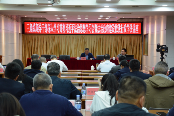 11月20日,三角镇领导干部深入学习贯彻习近平法治思想学习会暨法治政府建设依法行政学法讲座举行,邀请三角镇首席法律咨询专家、三角镇法律顾问吴冠华律师进行授课。镇全体领导班子、部门、单位中层正副职在主会场参加会议,其他全体干部、工作人员在分会场参加会议。镇党委副书记梁庆明主持会议。