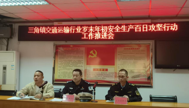 为全面学习贯彻习近平总书记关于安全生产重要指示精神,加强三角镇道路运输行业交通安全管理工作,有效防范和遏制道路交通安全事故的发生,切实做好岁末年初安全生产百日攻坚行动,近日,三角镇城建、应急、交警等部门组织危运、重型普通货物运输、驾培、维修、大件货物运输等交通运输行业负责人及安全员约60人,召开交通运输行业岁末年初安全生产百日攻坚行动工作推进会。