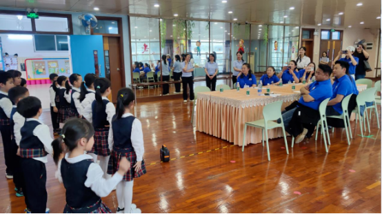 在中心幼儿园,学员们了解幼儿园的发展历程、办园理念、课程特色、师资建设、家园共育等基本情况;观摩了幼儿园混龄大区域活动,孩子们带来的“粤”课程粤语童谣表演充分展现了三角本土文化魅力。