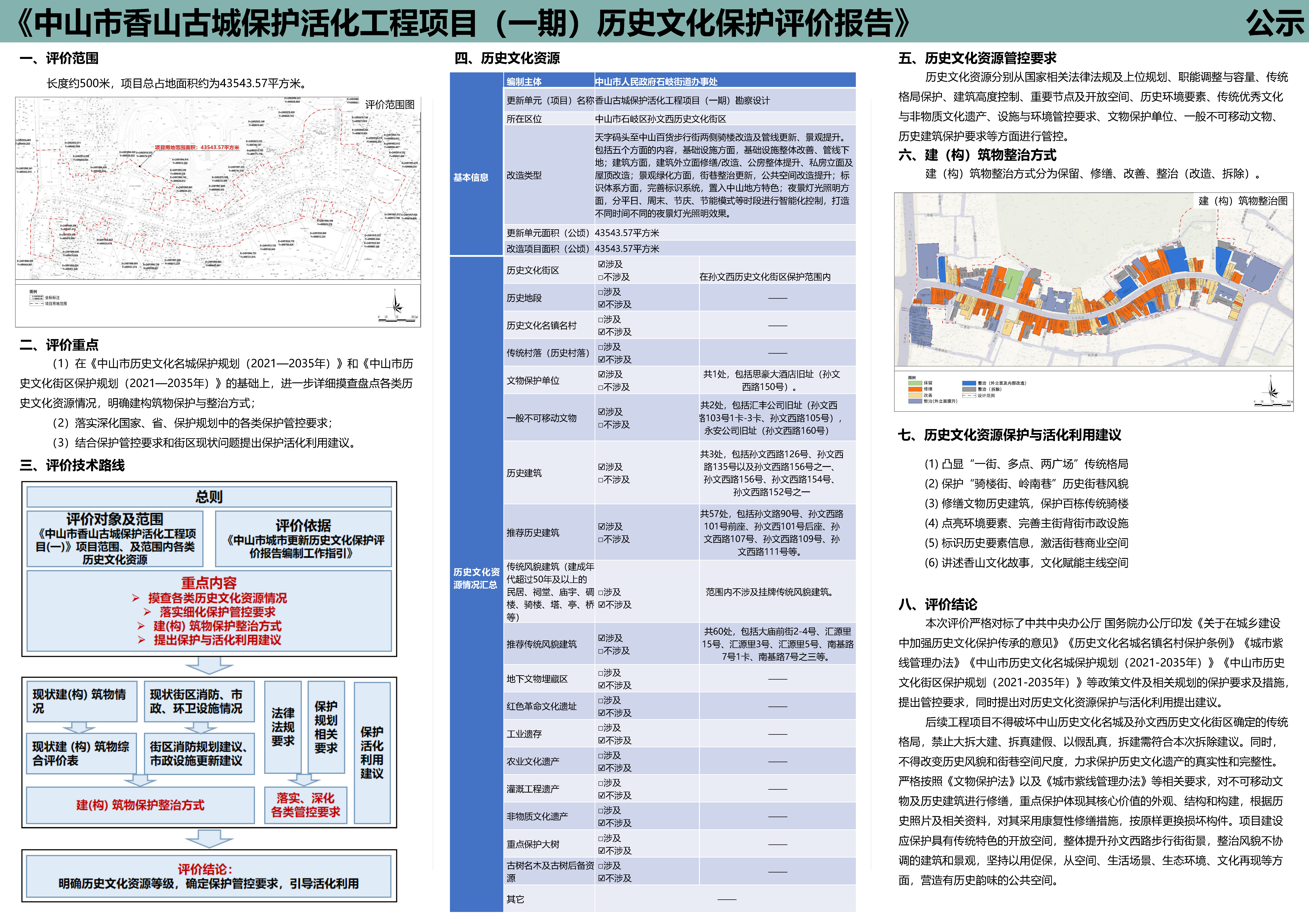 《香山古城保护活化工程项目(一期)历史文化保护评价报告》已编制完成,根据《中山市城市更新 历史文化保护评价报告编制工作指引》要求,现对该报告予以公示。