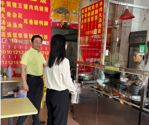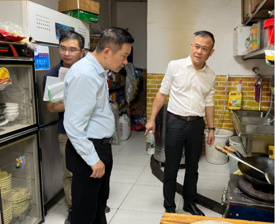 市商务局党组成员、市贸促会主任林俊带队在坦洲镇开展餐饮行业安全生产和消防工作督导检查。