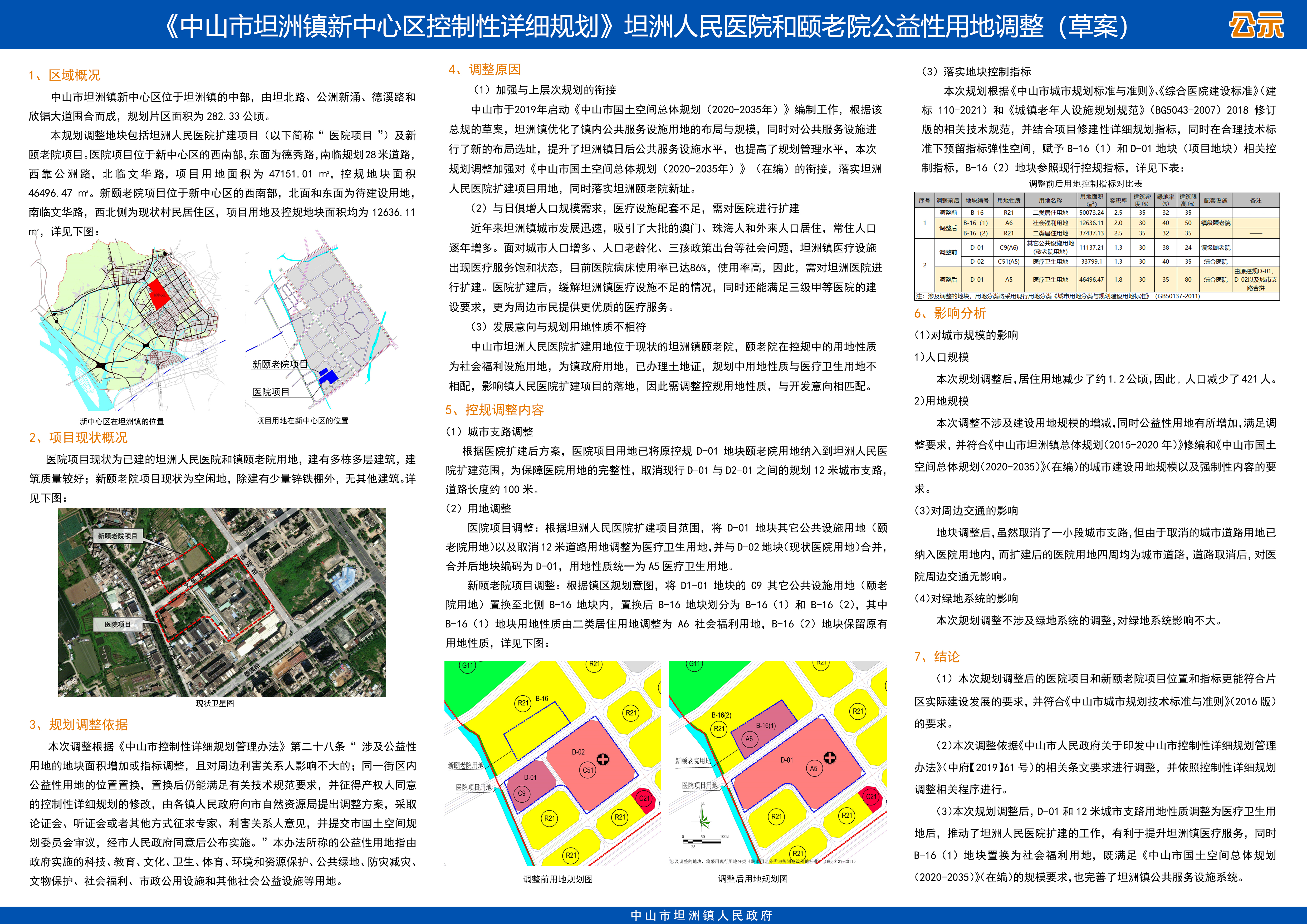 附件:《中山市坦洲镇新中心区控制性详细规划》坦洲人民医院和颐老院公益性用地调整(草案)公示