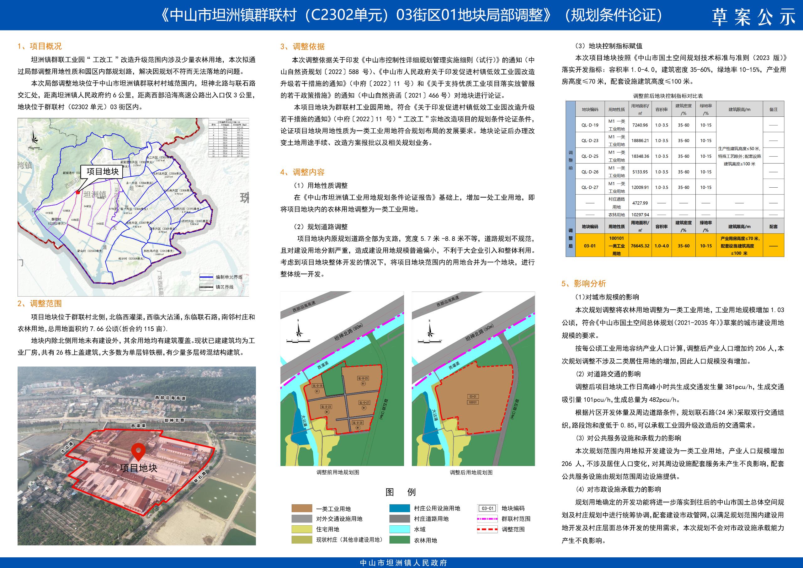 附件:《中山市坦洲镇群联村(C2302单元)03街区01地块局部调整》(规划条件论证)草案公示