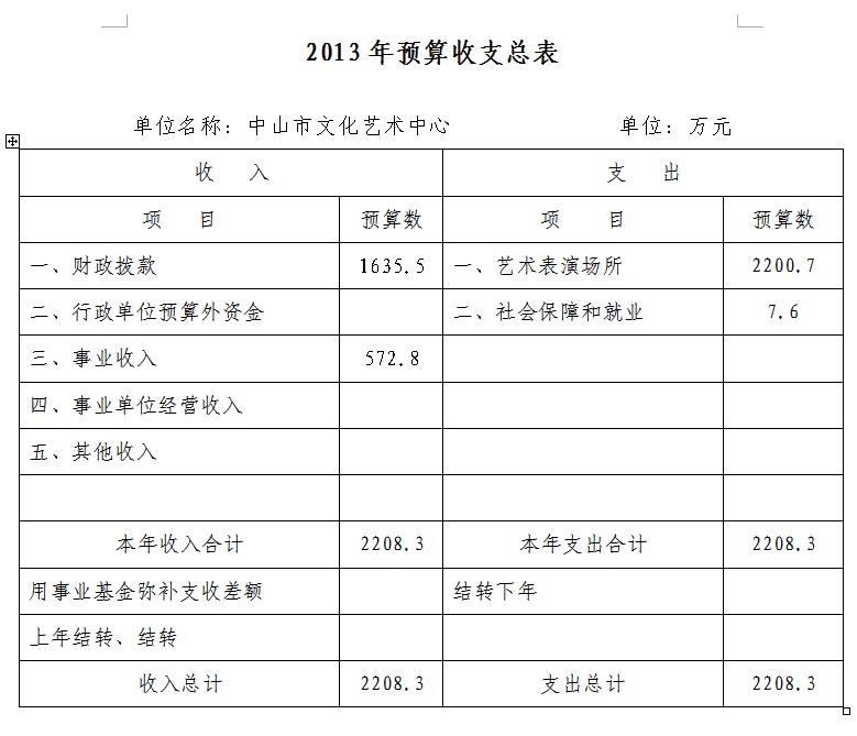 附表:1、2013年预算收支总表